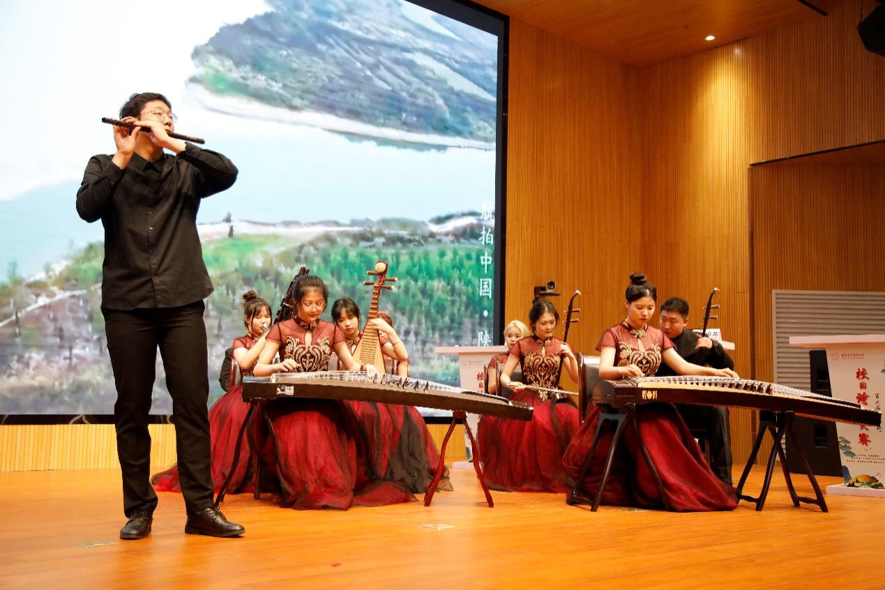 與往屆比賽相比,本屆大賽題目設置更加合理、題型更加豐富多樣。在“群英薈萃”和“大浪淘沙”環節,不僅包括詩句對答、挑字組詩、看畫猜詩等傳統題型,也設有趣味問答、情景答題、合縱連橫、現場搶答等新題型,場面生動有趣;在“誰與爭鋒”線索搶答題環節,緊張的氛圍使現場充滿了驚喜與期待;為了豐富和活躍大賽氛圍,人文學院藝術系學生表演了《秦川情》《春雨》《春到湘江》等樂器演奏搭配詩詞題目,意境悠遠、令人回味深刻。經過激烈角逐,知否知否隊和詩海游龍隊進入緊張的飛花令環節,兩支隊伍從“山”“河”“天”“月”“有”“無”中抽取三個關鍵字進行飛花令比拼,你來我往、精彩紛呈,贏得現場陣陣掌聲。